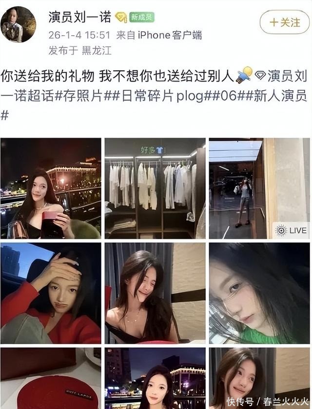 1月4日,年青女演员刘一诺在外交平台发布动态,配文你送我的礼物,我不想你也送给过别东说念主,并晒出一只价值昂贵的卡地亚手镯。