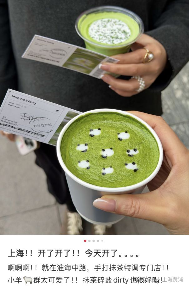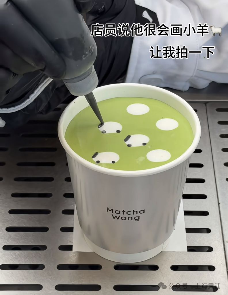 正本,淮海中路前年年底开了一家名叫Matcha Wang的抹茶店。其牌号小羊抹茶以甘醇抹茶为基底,绵密奶泡上点缀细碎香草籽,勾画出宛若青草地间嬉戏的黑面小羊,造型软萌疗养,口感也广受好评。