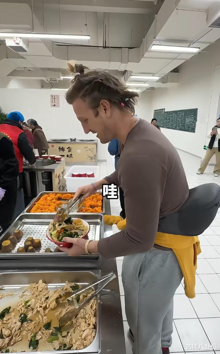 一开动番邦小哥还不敢投降,直到看到好多东谈主在列队取餐,桌上摆着热腾腾的饭餐,大厅里坐满了正在用餐的东谈主,才果真信了。