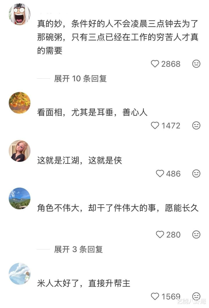 早在2020年,他就也曾开办了“爱心粥屋”,每天凌晨三点半准时出当今厨房,一直忙到早上六点,免费给环卫工东谈主等需要匡助的群体熬粥。