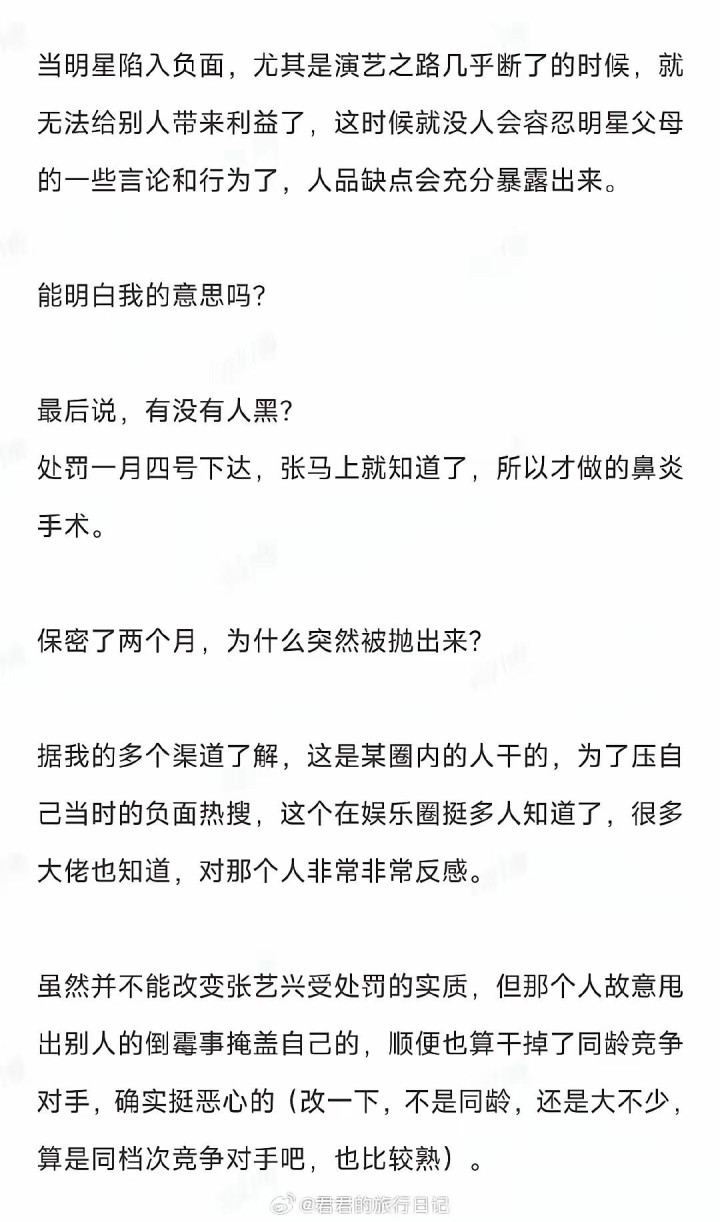 张艺兴风云蓦地迎来大回转,爆料东说念支配记最新发声,径直承认我方被东说念主行使,一场针对张艺兴的公论袭击,背后藏着内娱佳偶的挡枪合计。