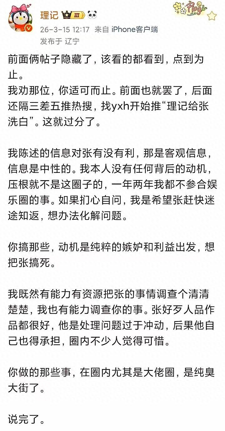 理记坦言,此前斡旋曝光张艺兴负面,并非我方主动爆料,而是被东说念主当“枪”使。幕后推手是近期负面缠身的一双明星佳偶,由女方主动提供素材、授意发声,见识很明确:借打压张艺兴,更始公论视野,给自家老公挡负面评价。