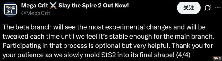 同期Mega Crit强调会保重《夷戮尖塔2》在多个平台的响应,但通过游戏内叙述用具所收罗的数据,实在的游戏玩家第一手响应对缔造团队最有匡助的。