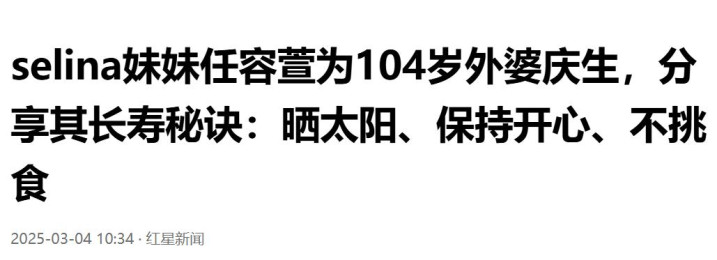 《selina妹妹任容萱为104岁外婆庆生,共享其龟龄诀要:晒太阳、保握昂然、不挑食》(红星新闻)