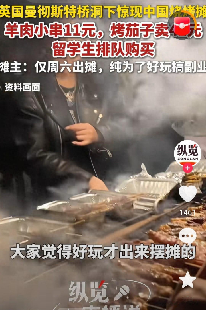 在曼彻斯特市中心一条不起眼的桥洞下,一个挂着"中国滋味"红灯笼的烧烤摊悄然走红。这个由中国留学生和当地厨师共同估计的焰火摊,不仅用11元一串的羊肉小串和41元一份的烤茄子顺服了门客味蕾,更在派遣媒体上激发了对于文化交融、物价互异与糊口机灵的热烈考虑。