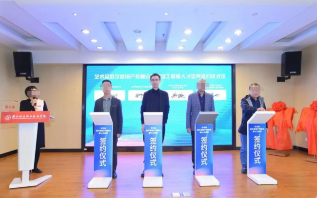 同庚,他又与浙江省高校文化创意产业互助定约、浙江经济奇迹手艺学院文化艺术学院、浙江省文化创意产业协会共同订立了《艺术品数字营销产教会通公约》,鞭策文化创意产业与高校教学的深度会通。