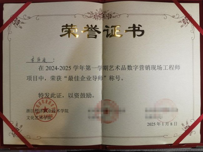 随后,他又走进浙江经济奇迹手艺学院和洛阳师范学院。因为教学摈弃优异,他被浙江经济奇迹手艺学院文化艺术学院评为“最好企业导师”。