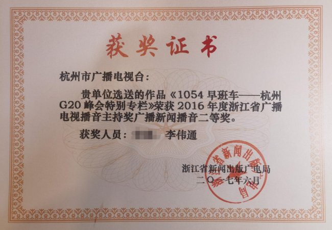 在西湖之声的六年,是他在媒体鸿沟的“黄金期间”。他专揽的《1054早班车》成了杭州东说念主上班路上最老成的声息;他和共事筹办的G20峰会相等专栏,得回了浙江省播送电视播音专揽奖二等奖。