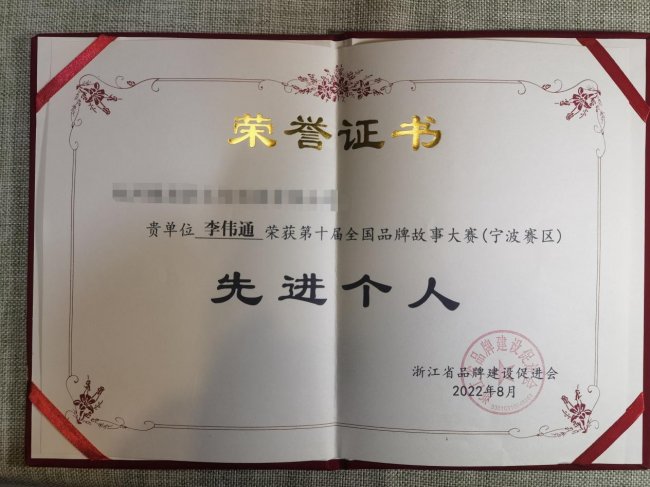2022年,他荣获浙江省品牌建筑促进会颁发的第十届寰宇品牌故事大赛“先进个东说念主”名称——这是对他品牌传播才气的又一次巨擘认同。