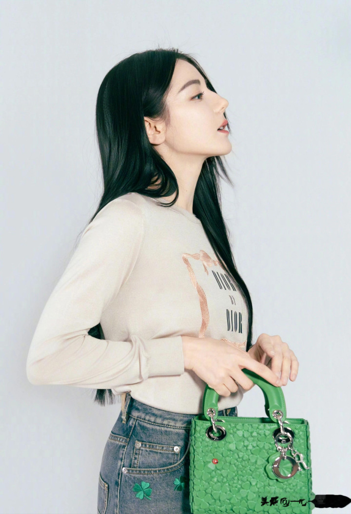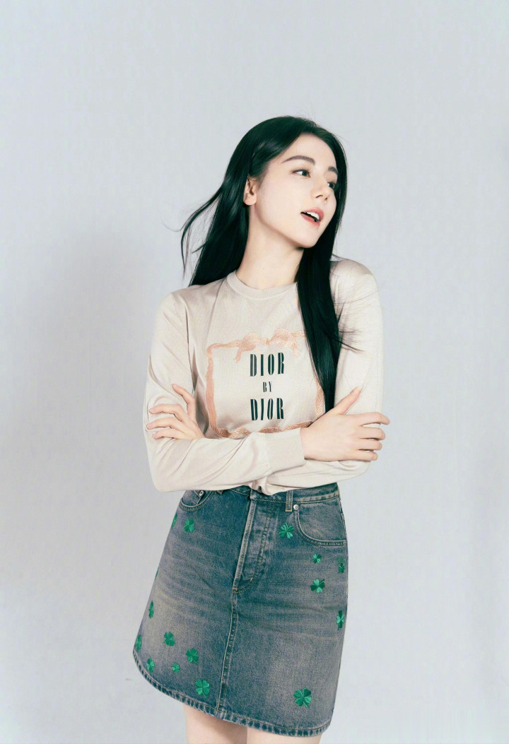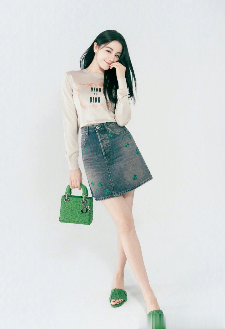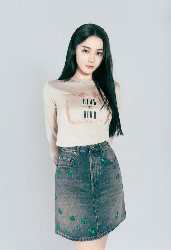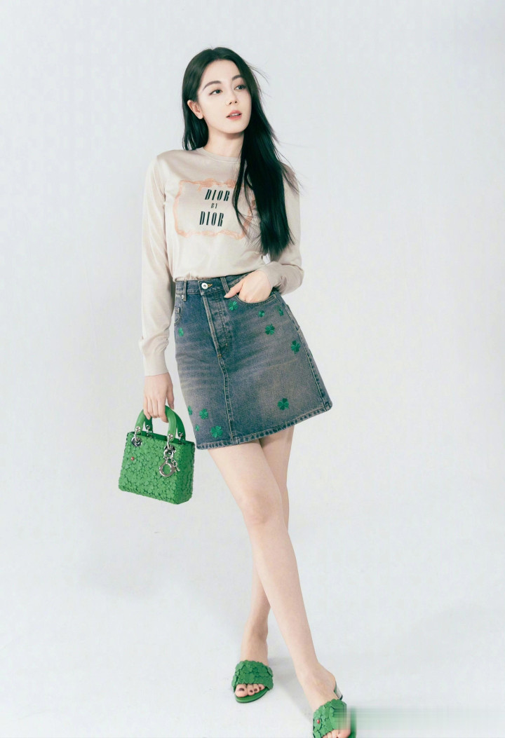 黄金城 迪丽热巴四叶草点缀的牛仔裤新鲜嫩力, 行运与好意思貌并存