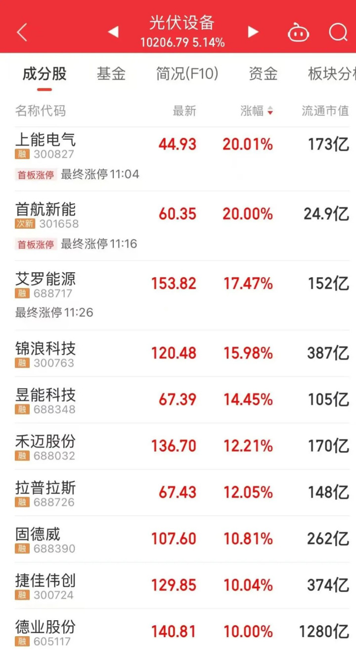 受此音讯催动,光伏意见股爆发,上能电气20cm涨停,首航新能涨逾19%,HJC黄金城(GoldenCity)官网首页九洲集团、艾罗动力涨逾15%,锦浪科技、昱能科技涨逾14%。港股光伏太阳能板块同步走强,钧达股份拉升涨超10%,信义光能涨超6%,福莱特玻璃涨超4%。