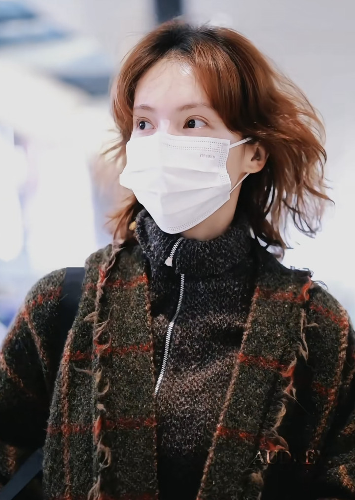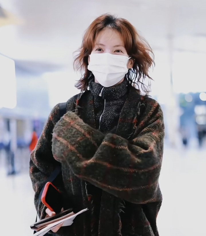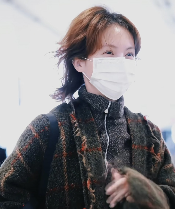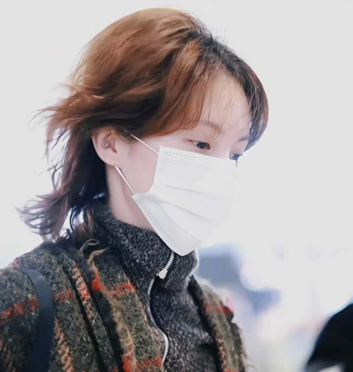 金晨戴着白色的口罩,看着像是素颜,她之前皆是长发,此次出面她换成了一头金色的小卷毛,长度只到脖子下方,她手里拿着护照,在机场走着。