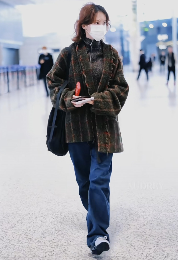 金晨穿戴格纹的中长款的外衣,内搭灰色高领毛衣,下半身搭配牛仔裤,脚踩通顺鞋。即是裤子相比长,皆踩到眼下了,嗅觉步碾儿皆不太便捷的形式。